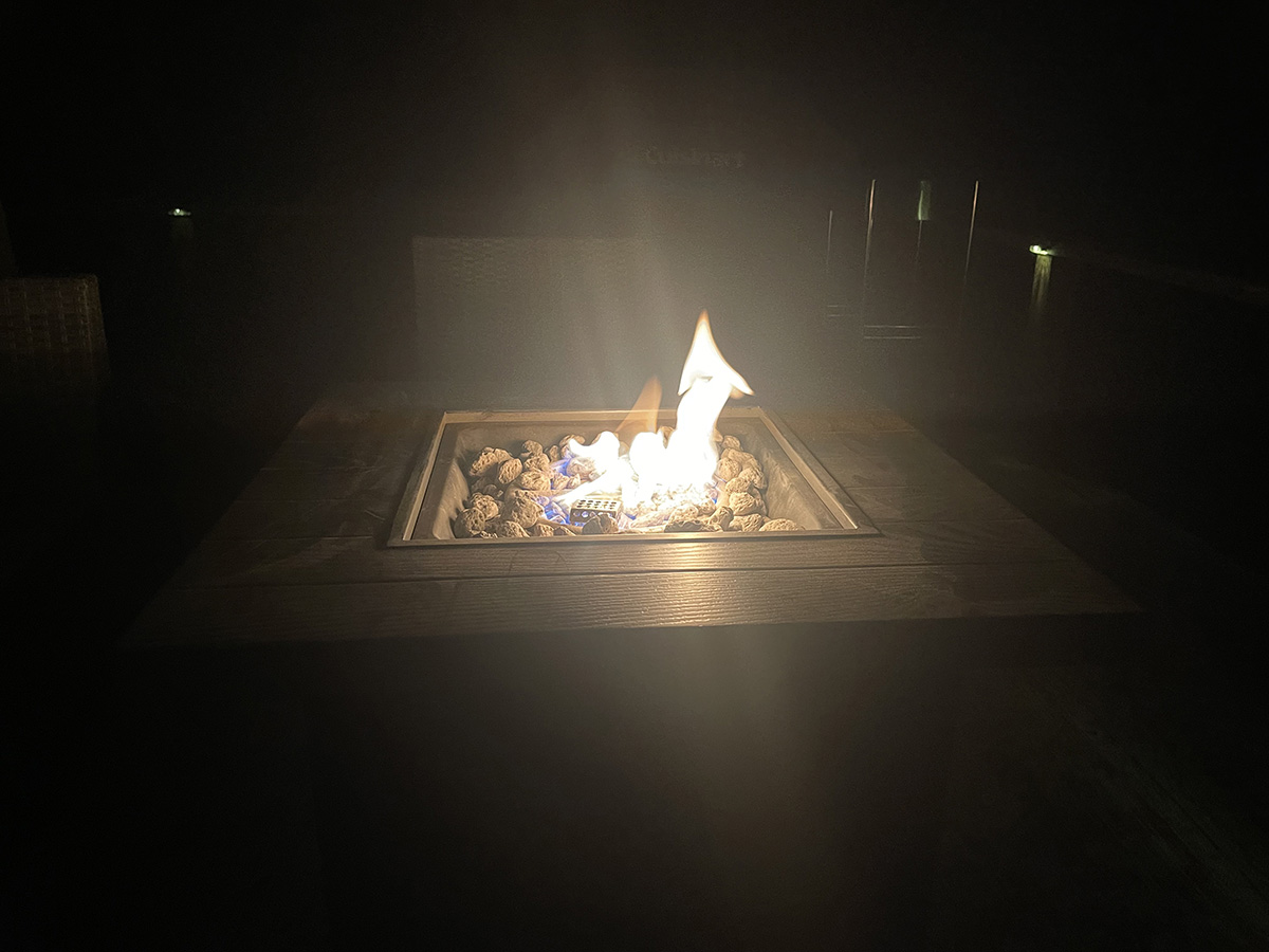 Outdoor Features: Step outside to discover a spacious deck with comfortable seating options and propane BBQ and fire pit, perfect for lounging lakeside or with views of the woods.